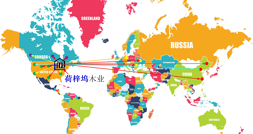 在全球, 尤其北美, 欧洲和中国建立的合作网络和其得天独厚的地理位置, 帮您选择优质低价原木。美国